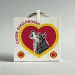 Lavorazione: Stampa fronte con cuore giallorosso con al centro muso di lupa che ulula e scritta “cuore giallorosso”. Stampa retro con 2 lupe che ululano, pallone giallorosso su banda giallorossa e scritta “cuore giallorosso”.