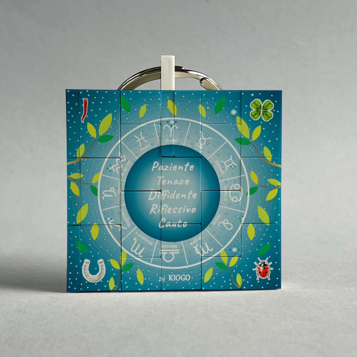 Lavorazione: Stampa fronte con segno zodiacale al centro dello zodiaco e indicazione del segno, del periodo e dell’elemento. Stampa retro con caratteristiche del segno al centro dello zodiaco e indicazione dell’elemento e stampa di 4 simboli portafortuna.