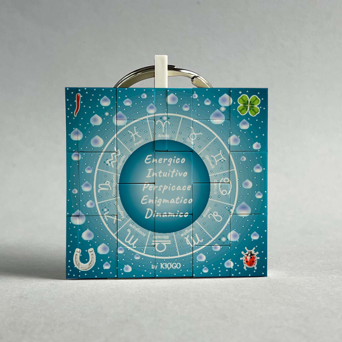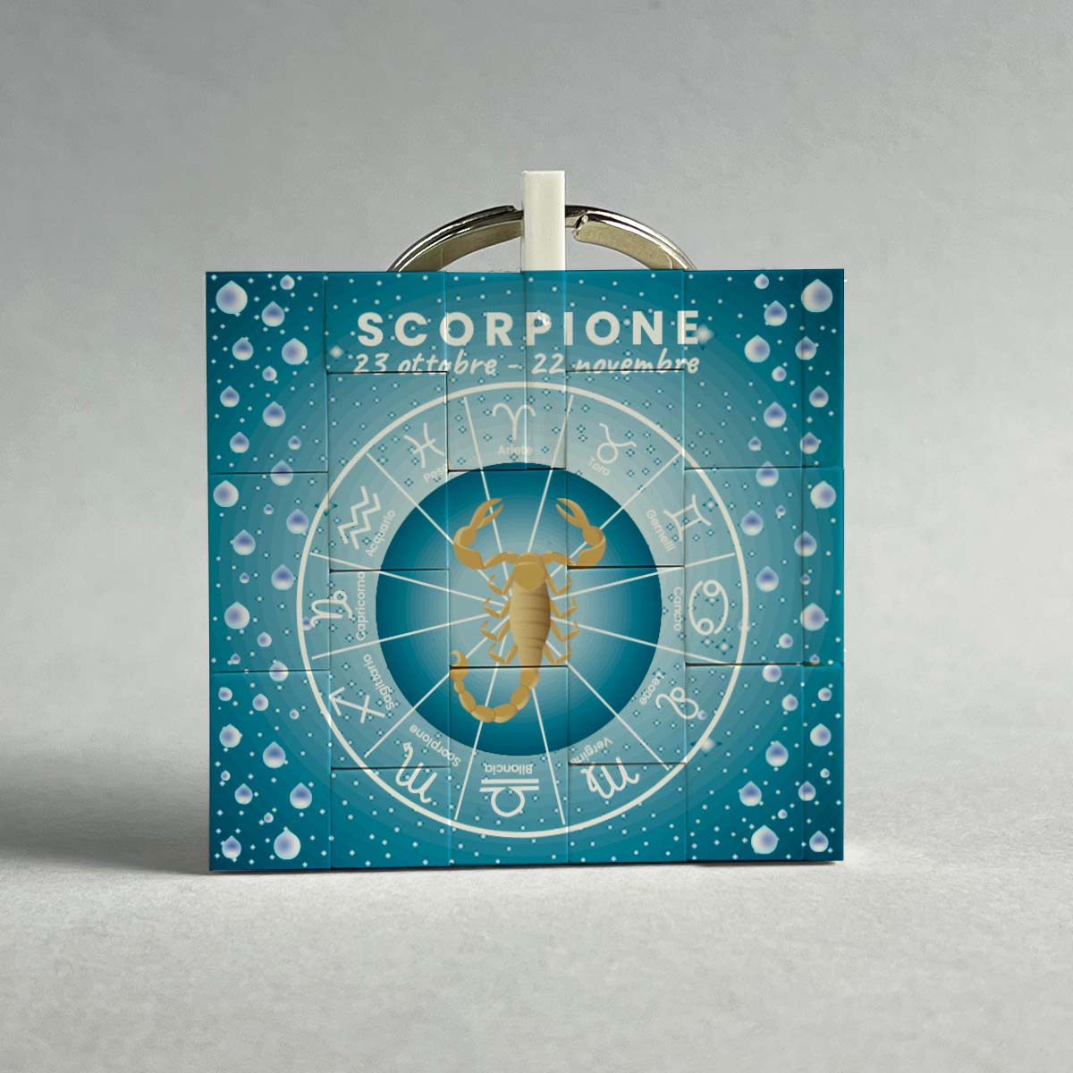 Lavorazione: Stampa fronte con segno zodiacale al centro dello zodiaco e indicazione del segno, del periodo e dell’elemento. Stampa retro con caratteristiche del segno al centro dello zodiaco e indicazione dell’elemento e stampa di 4 simboli portafortuna.