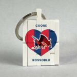 Lavorazione: Stampa fronte con cuore rossoblu con al centro grifone rossoblu e scritta “cuore rossoblu”. Stampa retro con palloni rossoblu e scritta “cuore rossoblu”.