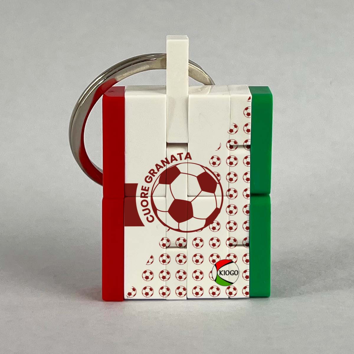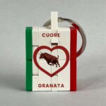 Lavorazione: Su mattoncini tricolore stampa fronte con cuore ad anello granata con al centro toro che incorna e scritta “cuore granata”. Stampa retro con palloni granata e bianchi e scritta “cuore granata”.