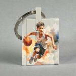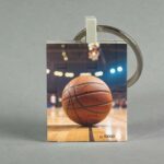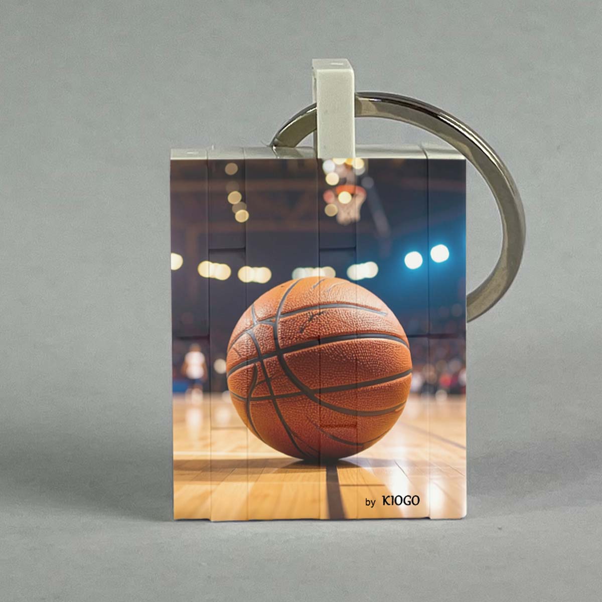 Quantità blocchetti: 14 Misure: h 40 (60 con anello) x L 26 x P 8 Lavorazione: Stampa fronte con disegno di bambino che gioca a basket. Stampa retro con immagine di un pallone da basket. Personalizzazione: NO