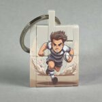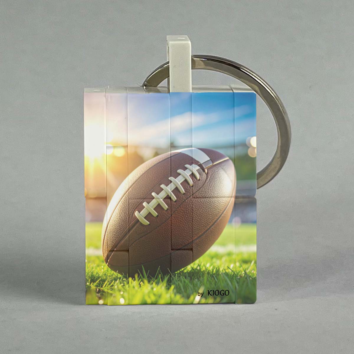Quantità blocchetti: 14 Misure: h 40 (60 con anello) x L 26 x P 8 Lavorazione: Stampa fronte con disegno di ragazzo che gioca a rugby. Stampa retro con immagine di un pallone da rugby. Personalizzazione: NO
