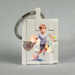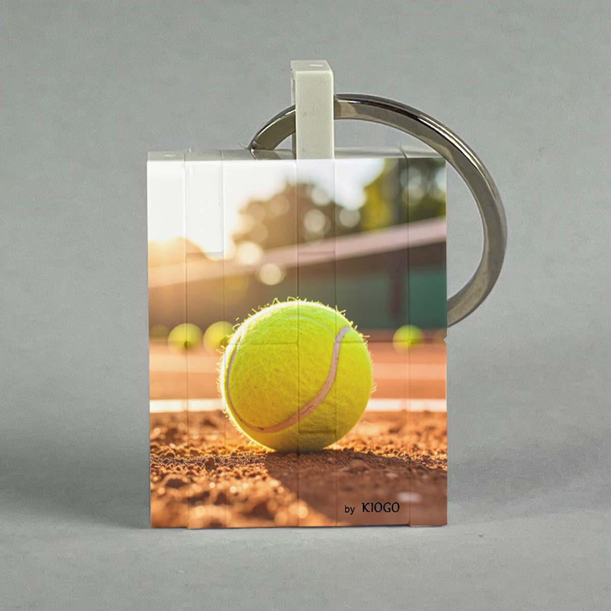 Quantità blocchetti: 14 Misure: h 40 (60 con anello) x L 26 x P 8 Lavorazione: Stampa fronte con disegno di bambino che gioca a Tennis. Stampa retro con immagine di una pallina da tennis. Personalizzazione: NO