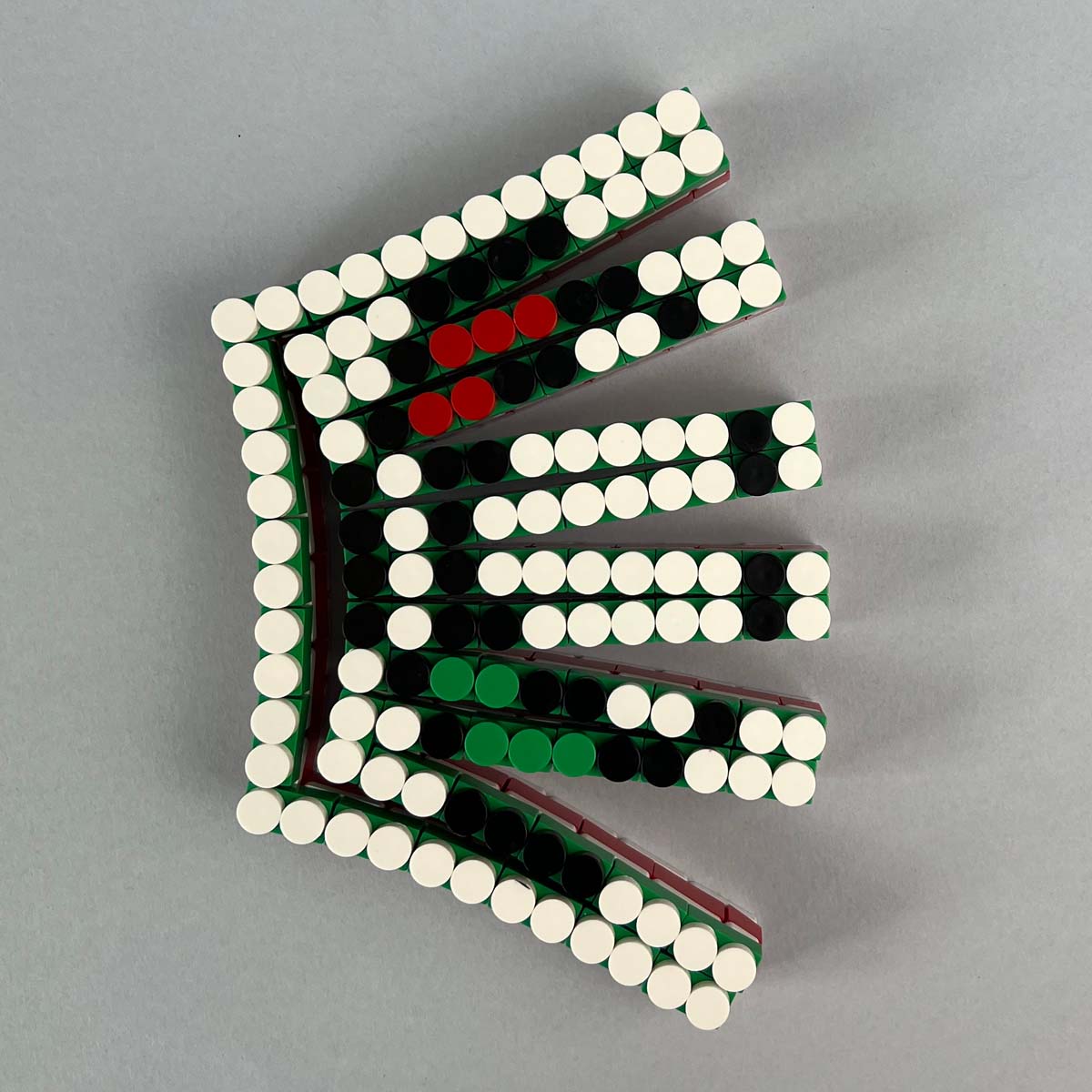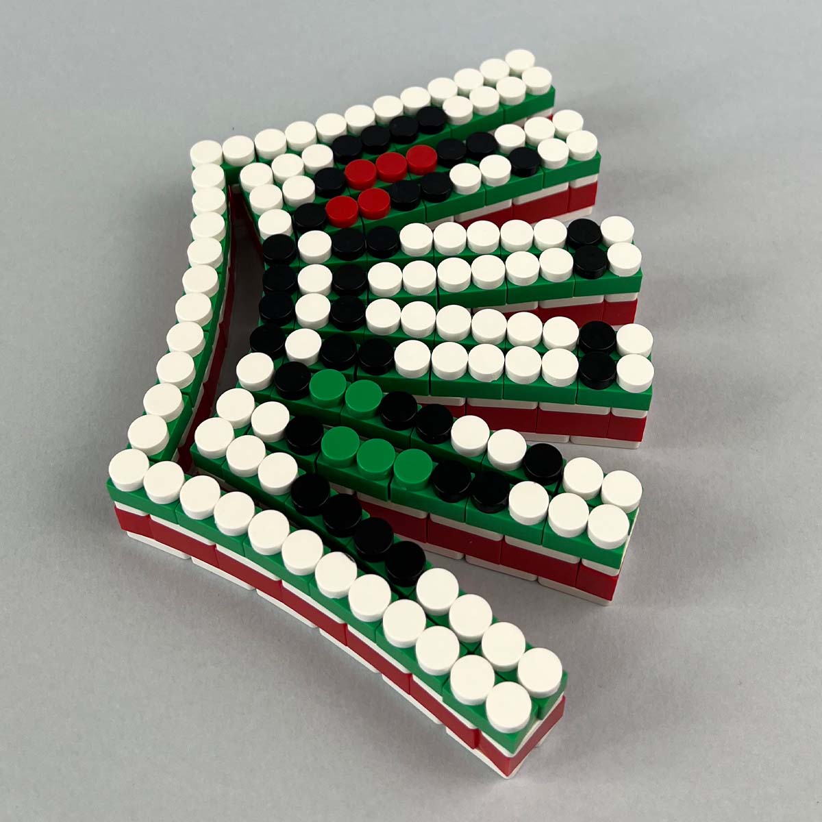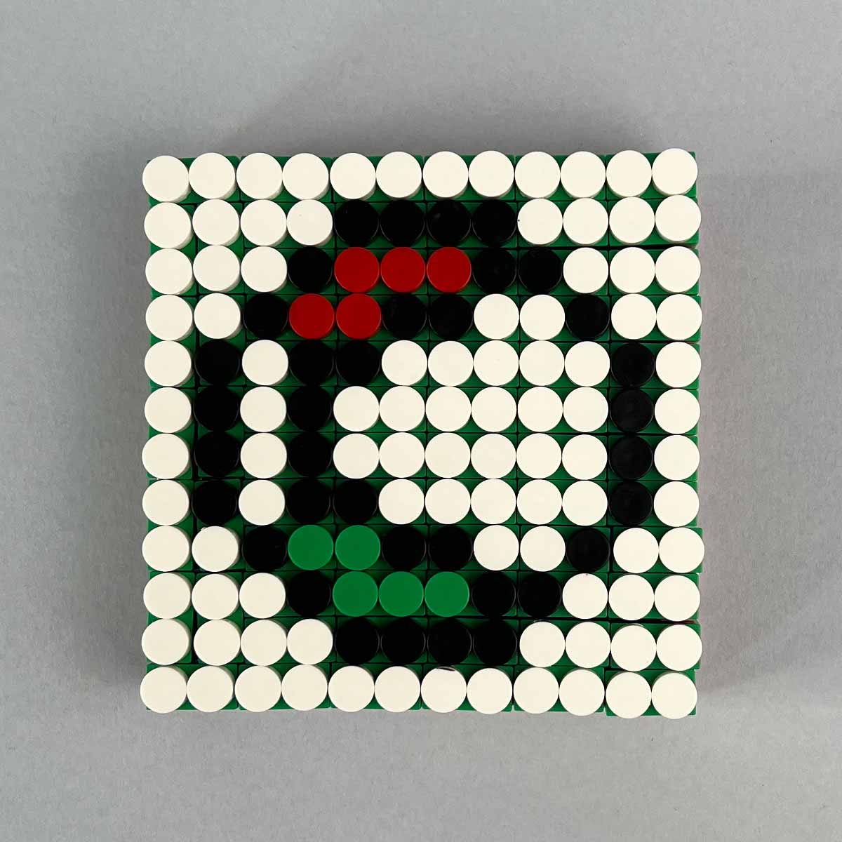 Quantità blocchetti: 432 Misure: L 96 x h 96 x P 26 Lavorazione: Immagine del logo Kiogo realizzata con tanti pixel di vari colori.