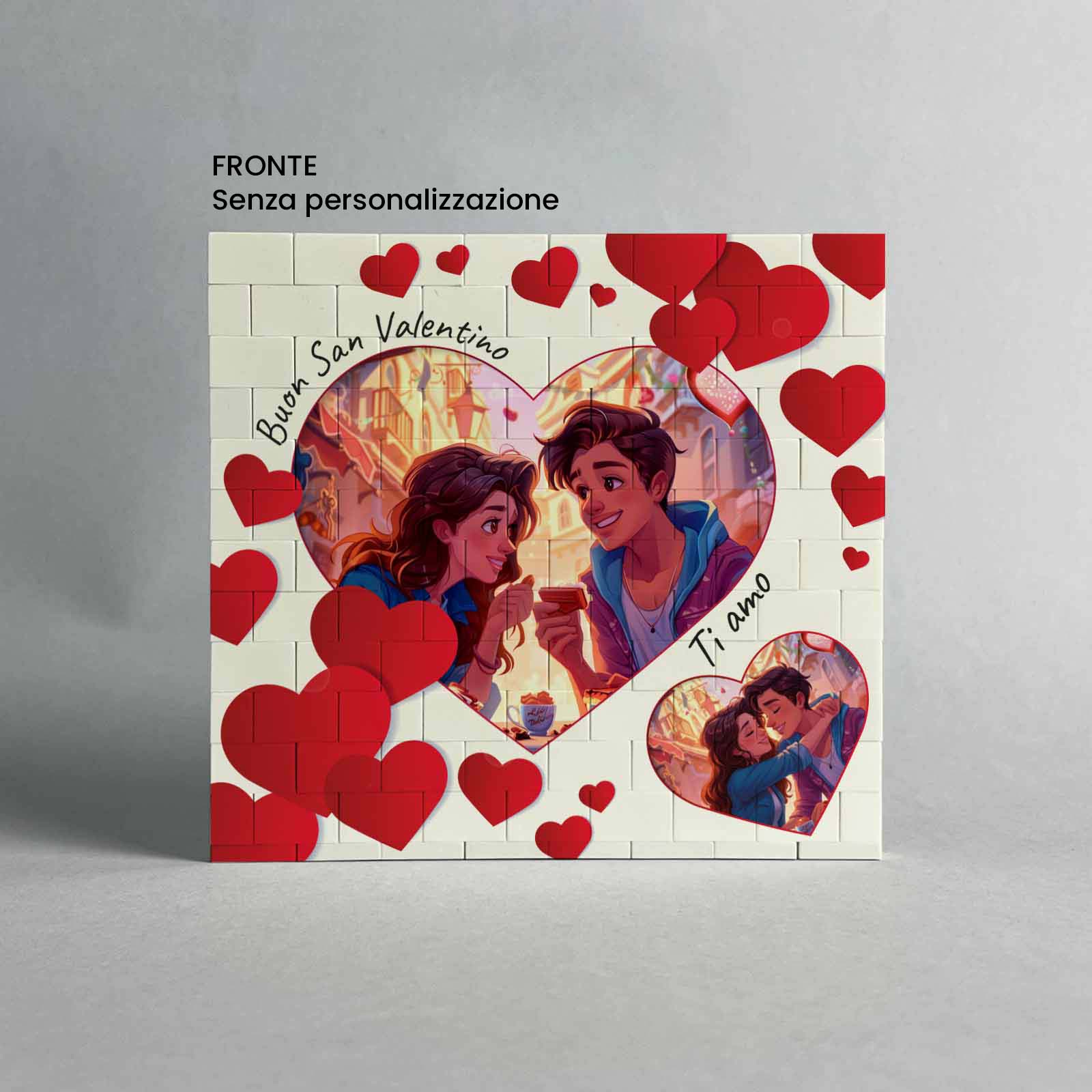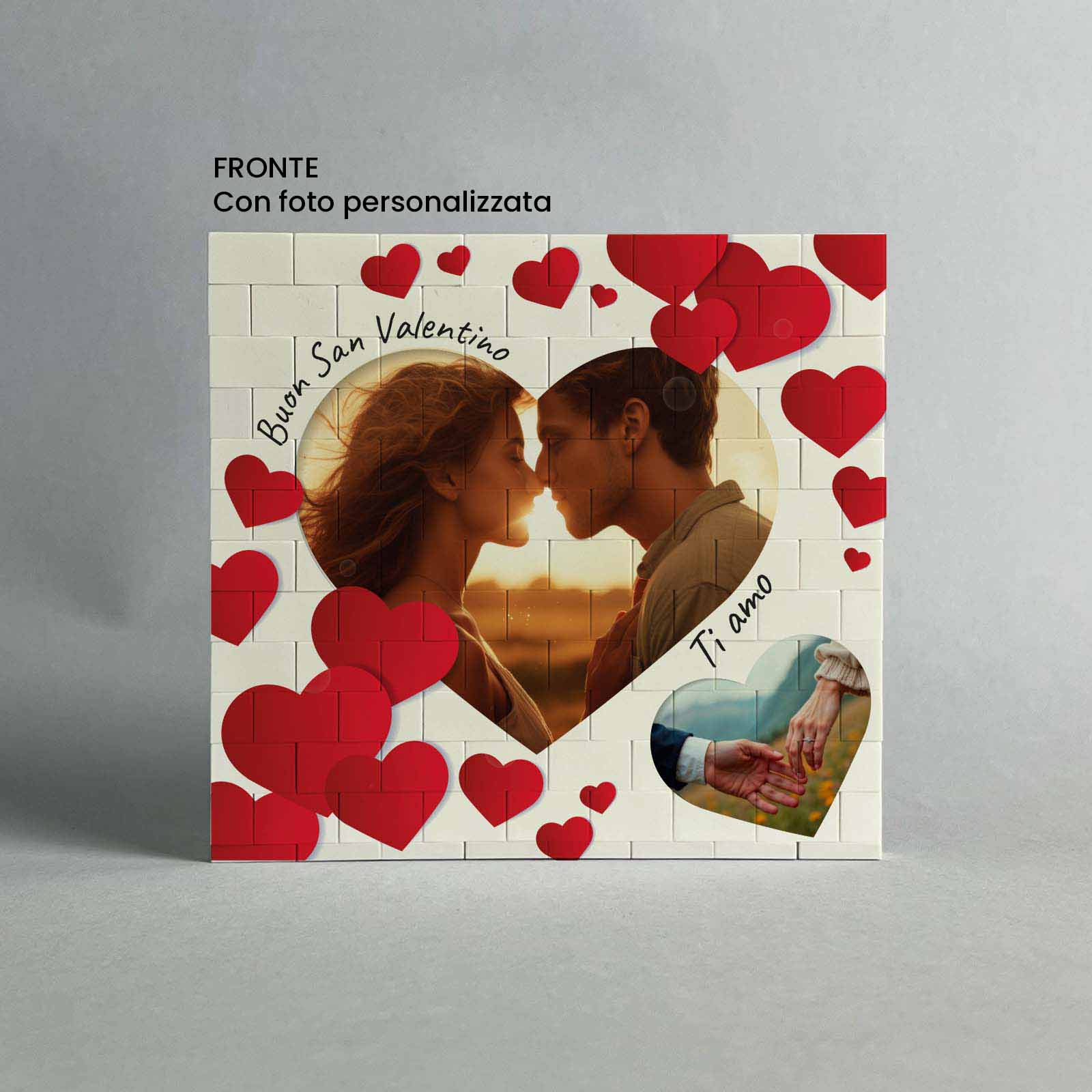 Fronte-Retro: Fronte foto. Fronte/retro frase personalizzabile ‘Buon San Valentino’ max. 20 caratteri.
