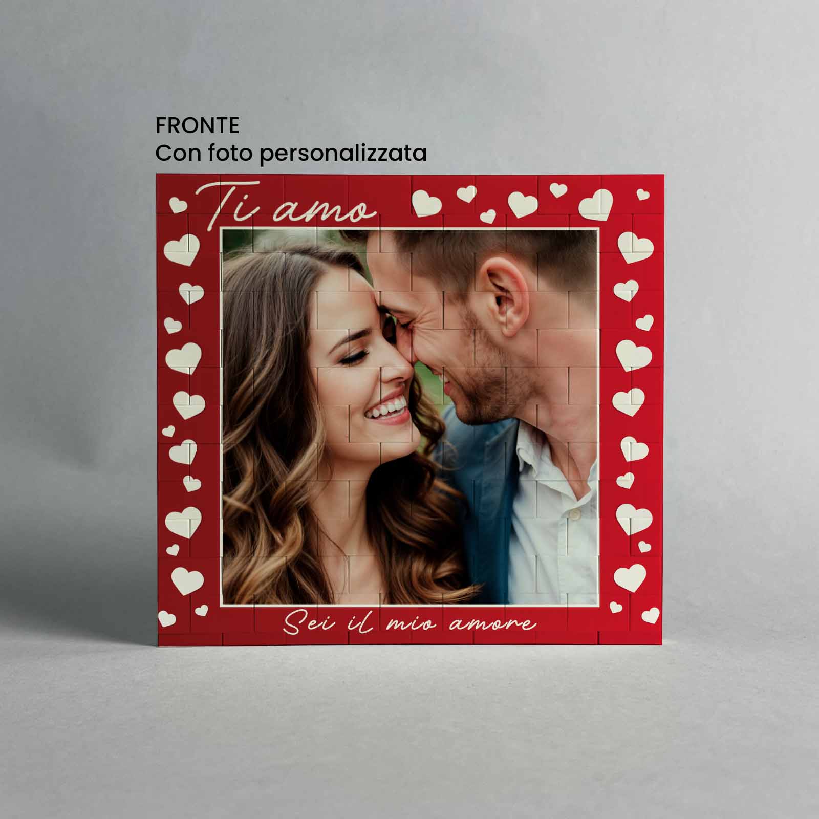 • Fronte-Retro: Fronte/retro foto personalizzabili. Fronte frase personalizzabile ‘Sei il mio amore’ max. 25 caratteri.
