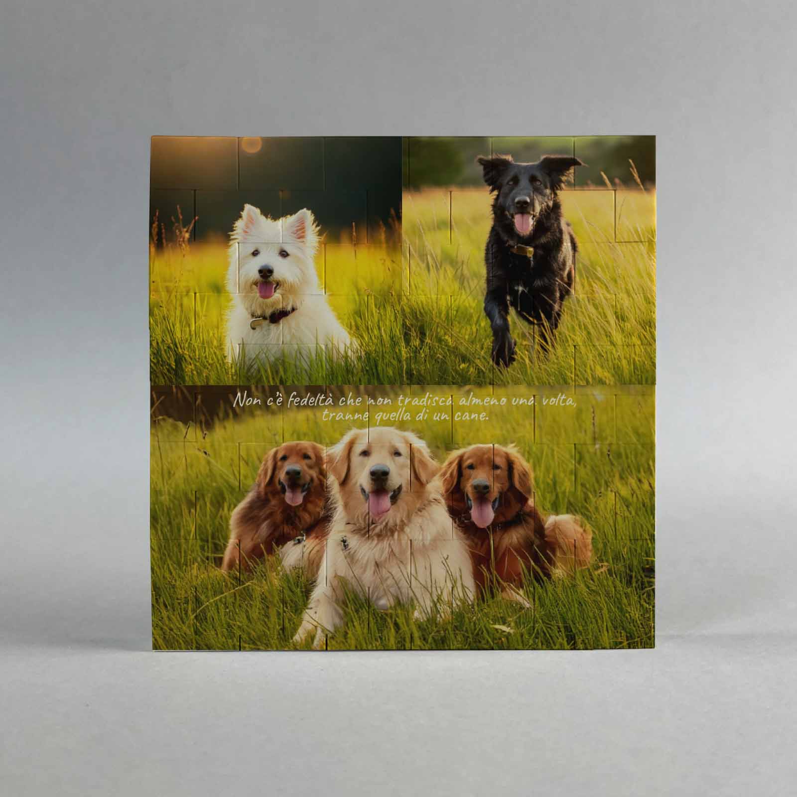 Lavorazione: stampa fronte-retro con foto di cani vari e aforisma dedicato