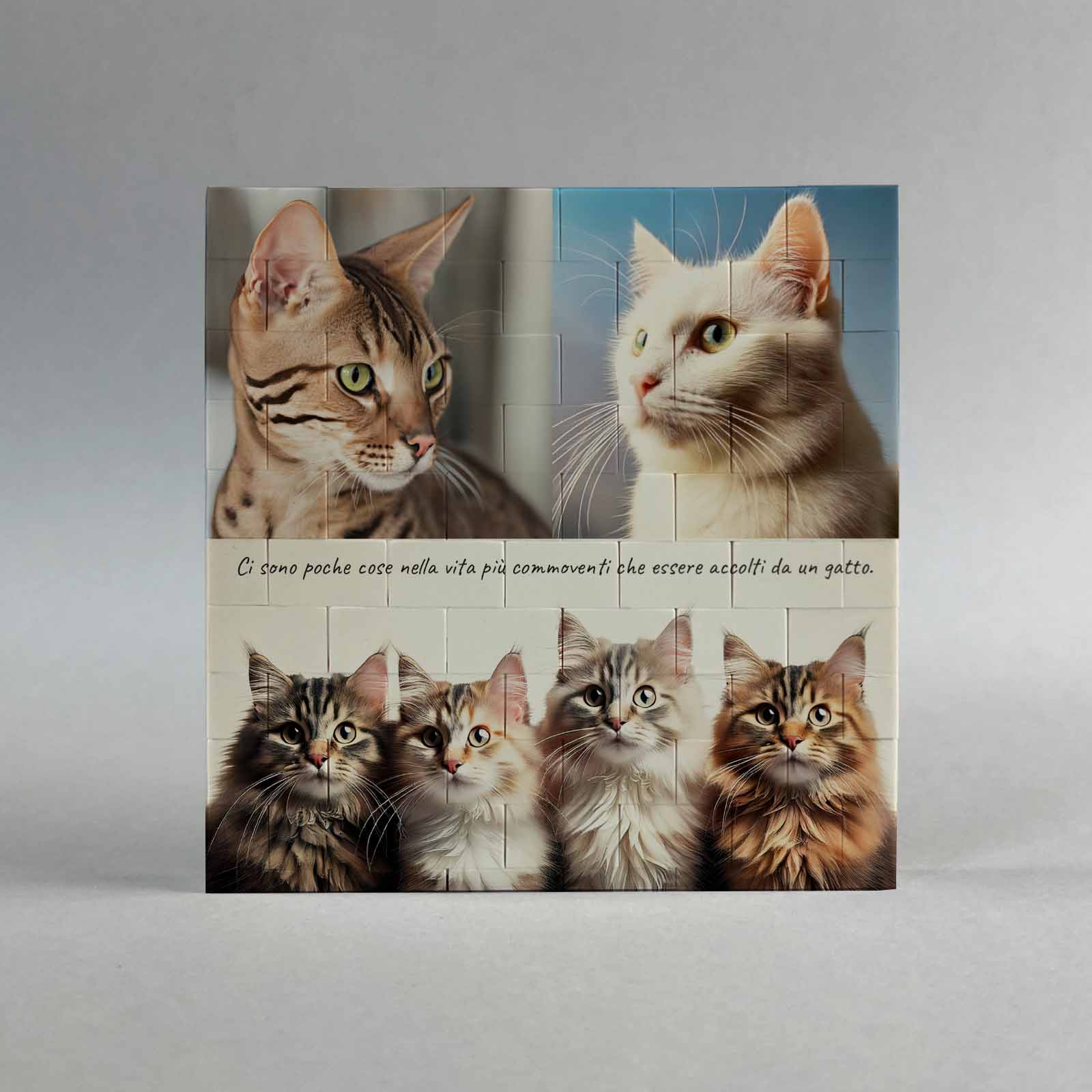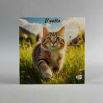 Lavorazione: stampa fronte-retro con foto di gatti vari e aforisma dedicato