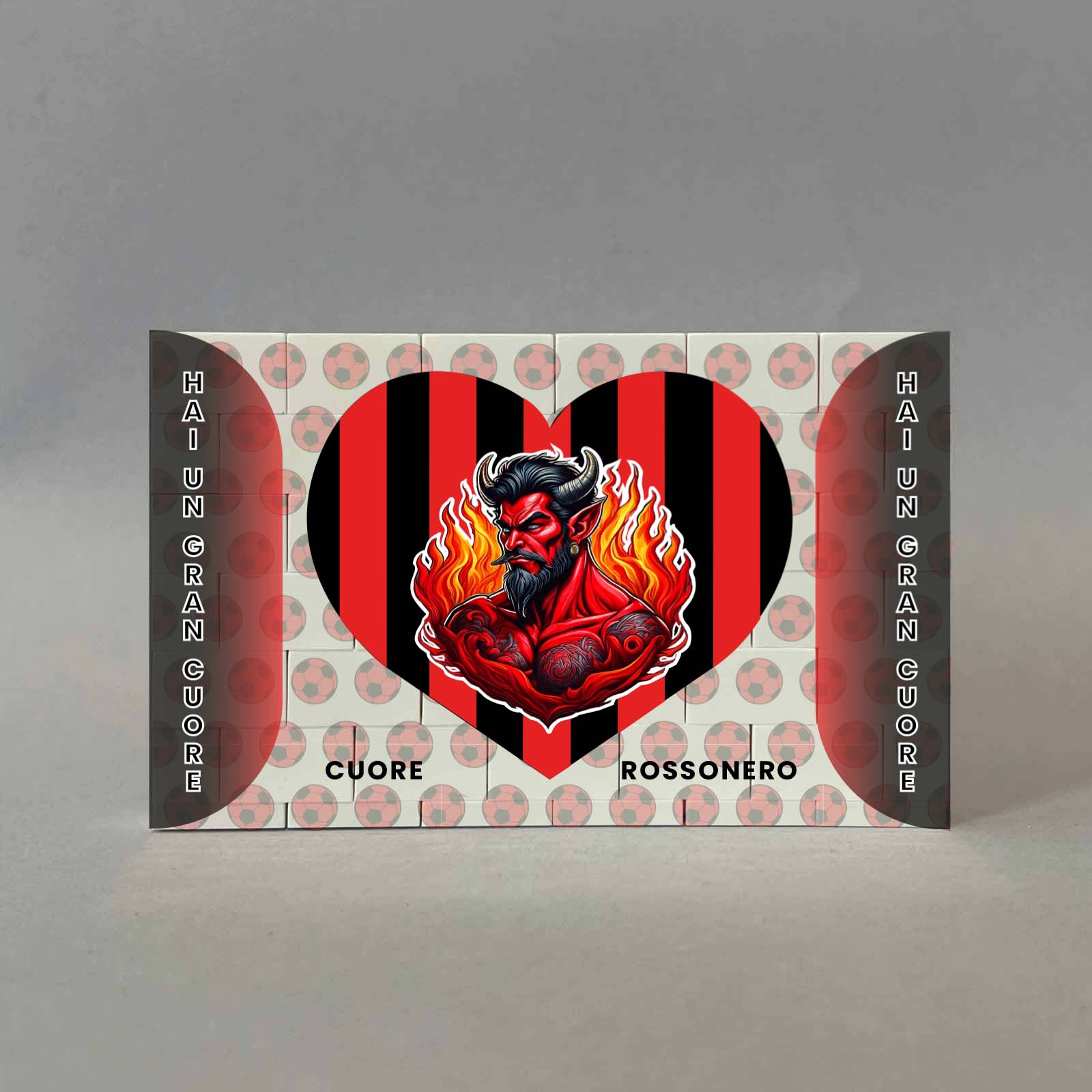 Lavorazione: stampa fronte-retro nei colori sociali con frase hai un gran cuore.