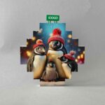Lavorazione: stampa fronte-retro con immagine di una famiglia di pinguini con il cappello rosso e sullo sfondo delle lucine